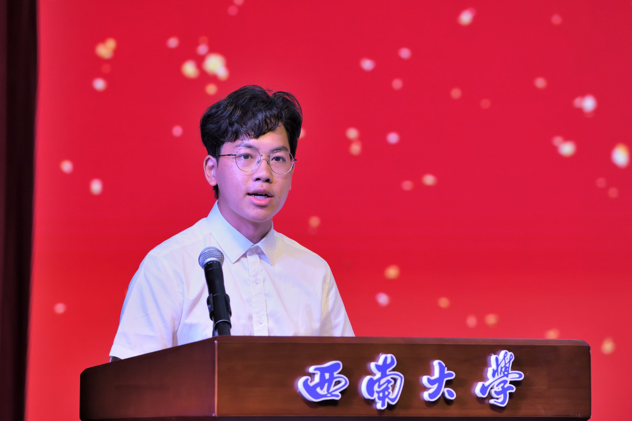2025级机械类专业本科生何佳乐作为新生代表发言。他提出以“创业者”心态投入大学四年,将专业能力精心打磨为“核心产品”,不断提升自我,为国家发展与民族复兴伟业贡献青春力量。