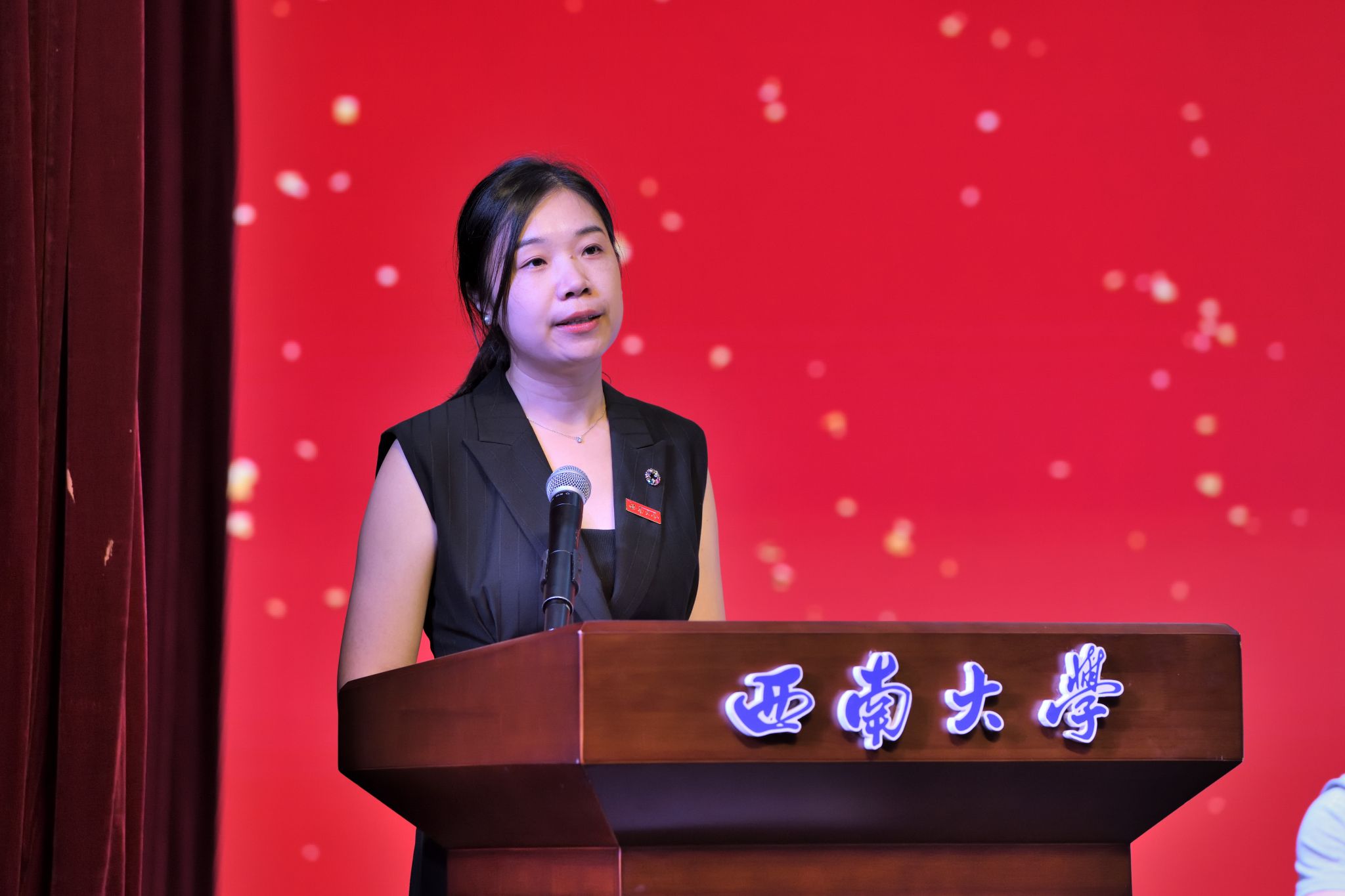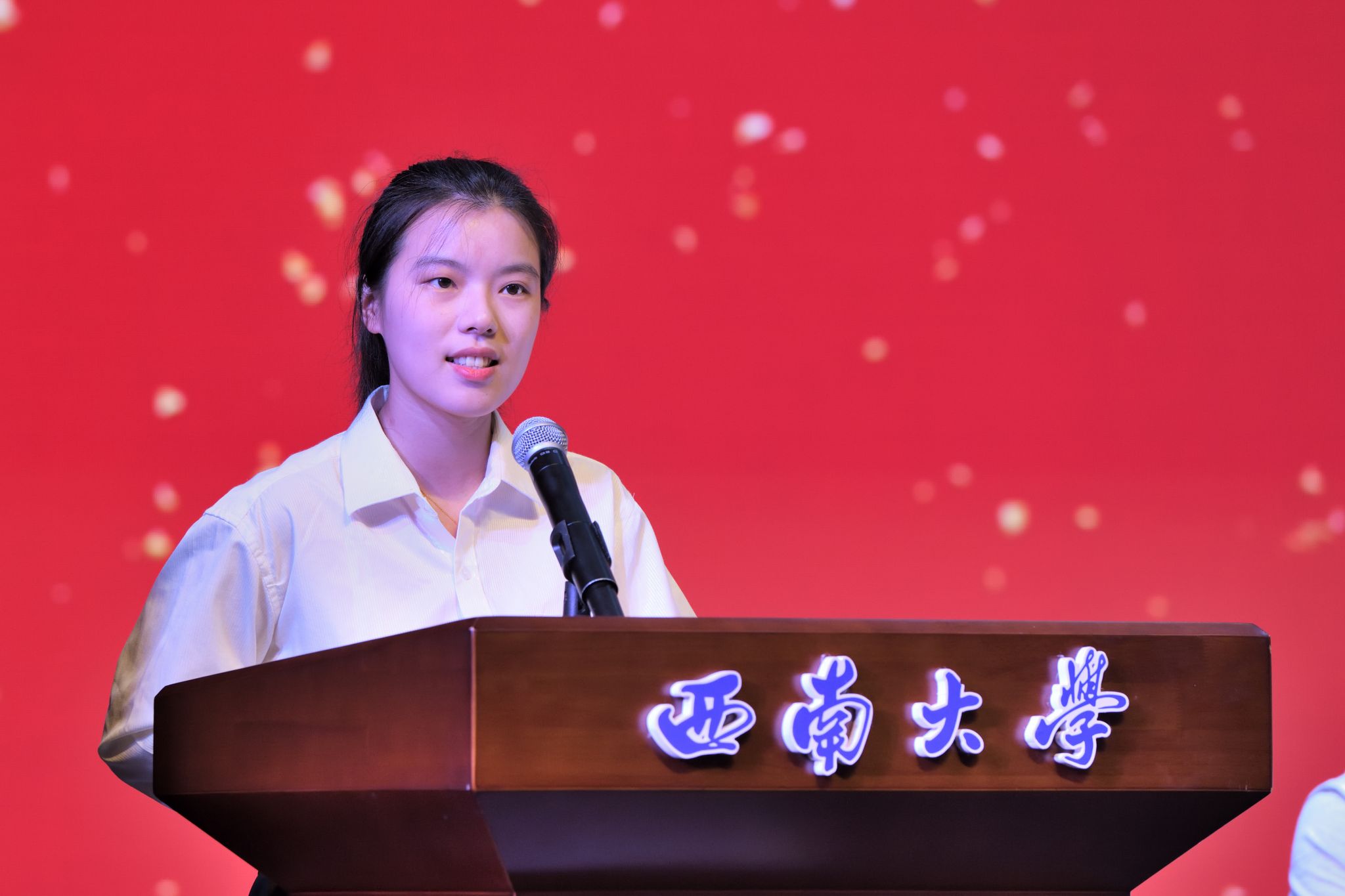 学院副教授胡嫚作为教师代表发言。她热烈欢迎新生的到来,鼓励大家尽快完成从“被动学习”到“主动学习”的转变,树立明确目标,激发内在动力。她以自身经历告诫同学们,在失败中淬炼的成长是大学里最宝贵的财富,要勇于面对挑战,扎实专业知识,磨炼品格修养,以脚踏实地之姿实现自身理想,书写精彩的大学生活。