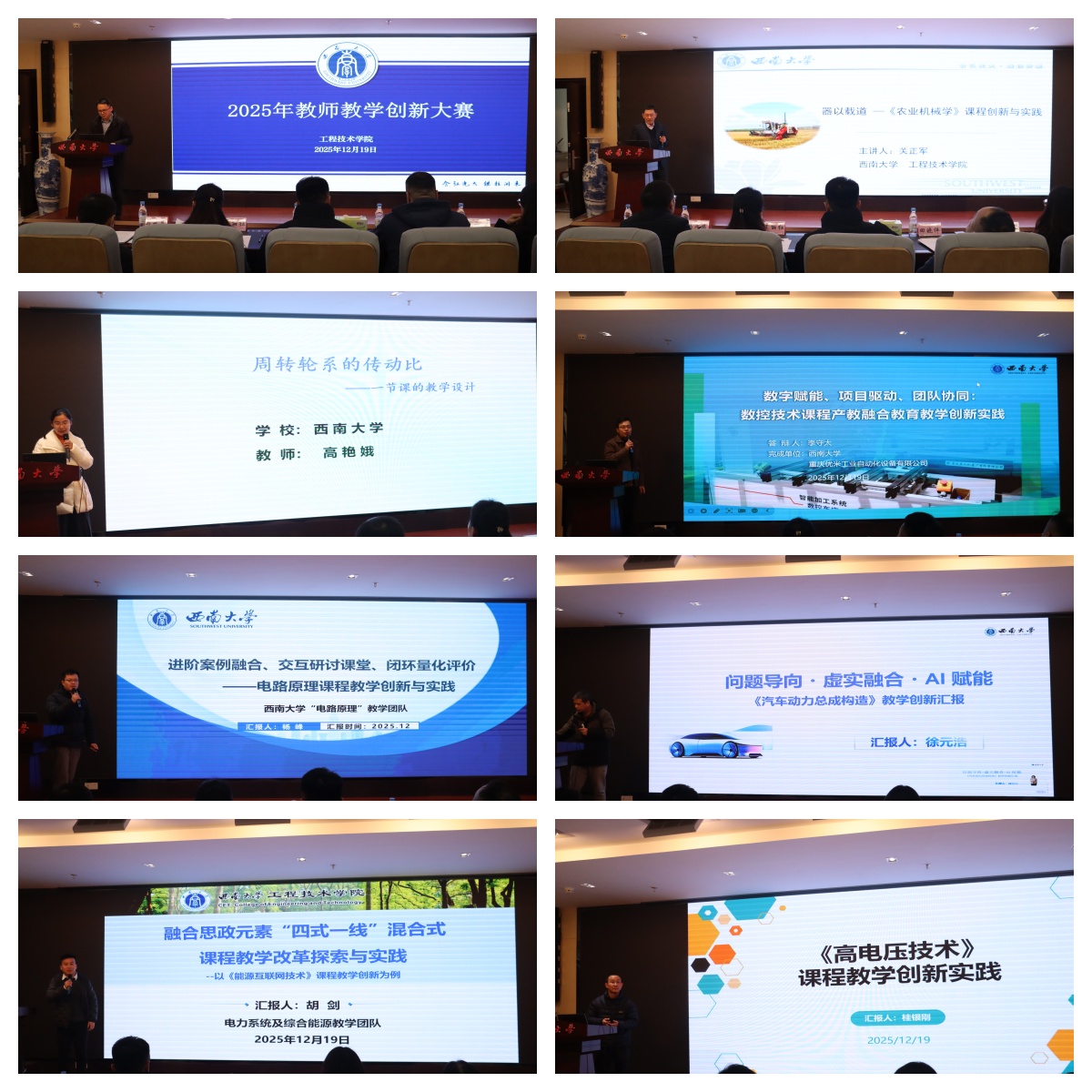 12月19日下午,学院在工科大楼A座511报告厅举办了2025年教师教学创新大赛。本次大赛经由自愿报名与系上推荐,共有7位教师参加比赛,他们分别来自农机与车辆系、机械工程系、电气工程系。大赛特邀学校本科生院领导和学院本科教学督导组专家担任评委。