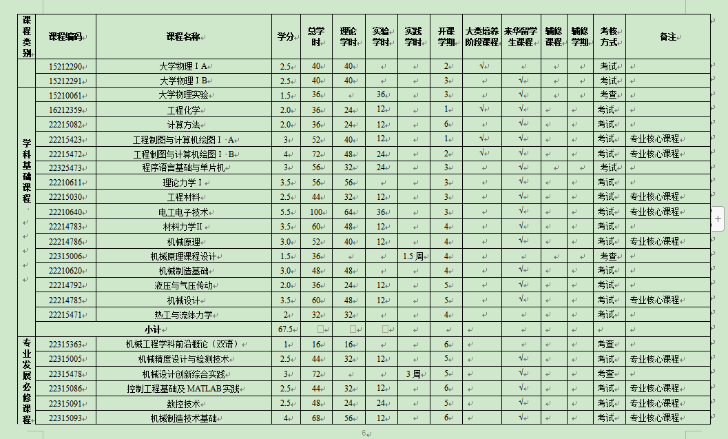 实验和实践学分:47.5学分 | 实验和实践比例:28.3% |