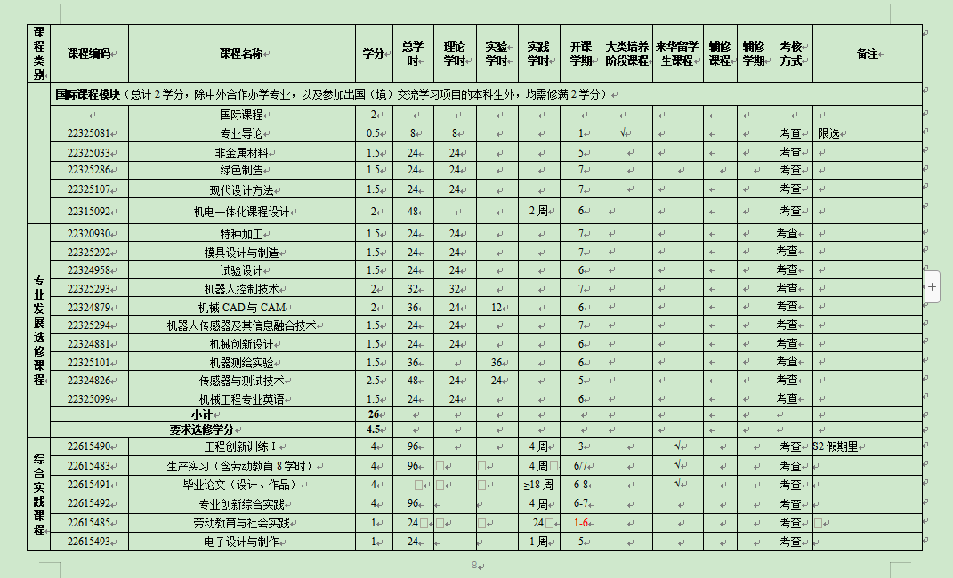 综合实践课程:18.5学分 | 实践必修课:18.5学分 |