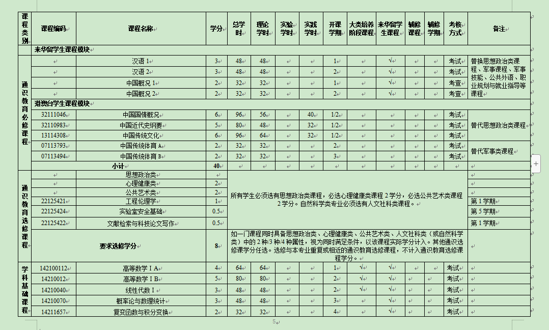 毕业学分:主修学位168学分,来华留学生119.5学分。