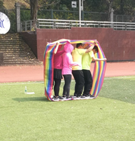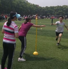 教职工比赛项目还有诸如足球射门、掷飞镖、无敌风火轮、混合迎面接力赛、毛毛虫等生趣盎然的集体趣味项目比赛。每个项目既能锻炼运动员们的体力又趣味十足,激起参赛者高涨的参赛热情。运动员们个个不甘示弱,斗志昂扬,拿出自己的真实本领,展示着自己的精湛技术。整个赛场洋溢着欢声笑语,让大家在欢乐中得到锻炼。